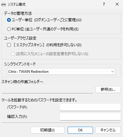 シンクライアントモードがデフォルトでは「無効」になっているようですが、画像のように「TWAIN Redirection」に変更してOKをクリック。